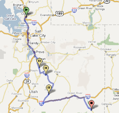 I set off from Ogden to Moab Tuesday evening. For whatever reason (road construction sign confusion, sleepiness) I went this way: